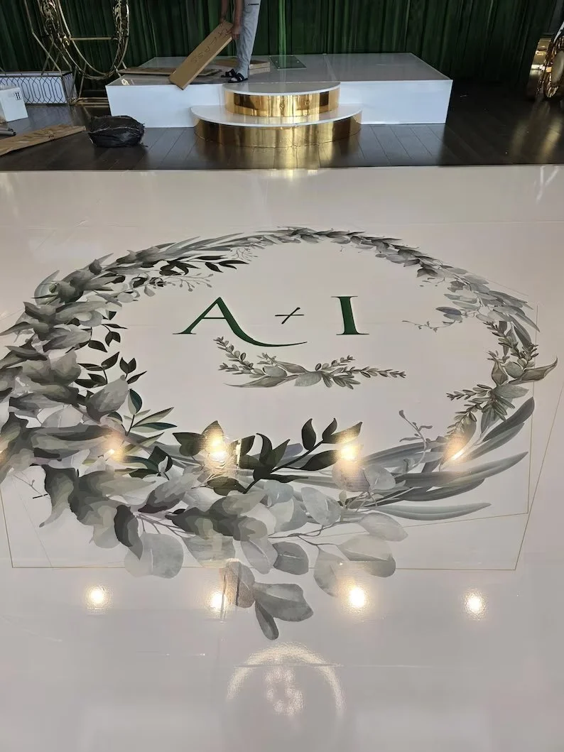 When you place your order, you’ll receive a white removable vinyl floor wrap that’s custom-sized to match the dimensions you selected at checkout. This high-quality, easy-to-apply vinyl is designed specifically for smooth indoor flooring and provides a clean, elegant base for your event.